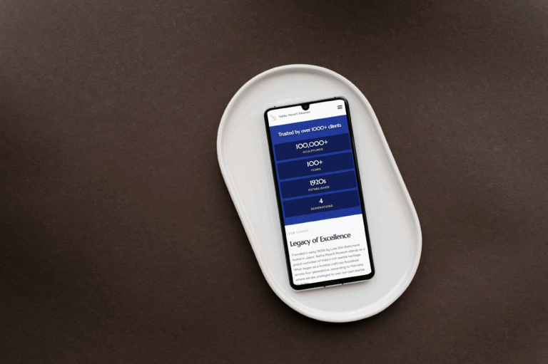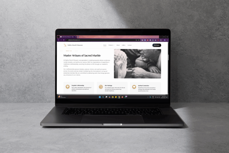 The Natha Moorti Museum project translated a physical collection into a calm, immersive digital experience. The site highlights sculptures and exhibits through a minimalist, museum-grade layout that prioritizes imagery and context.